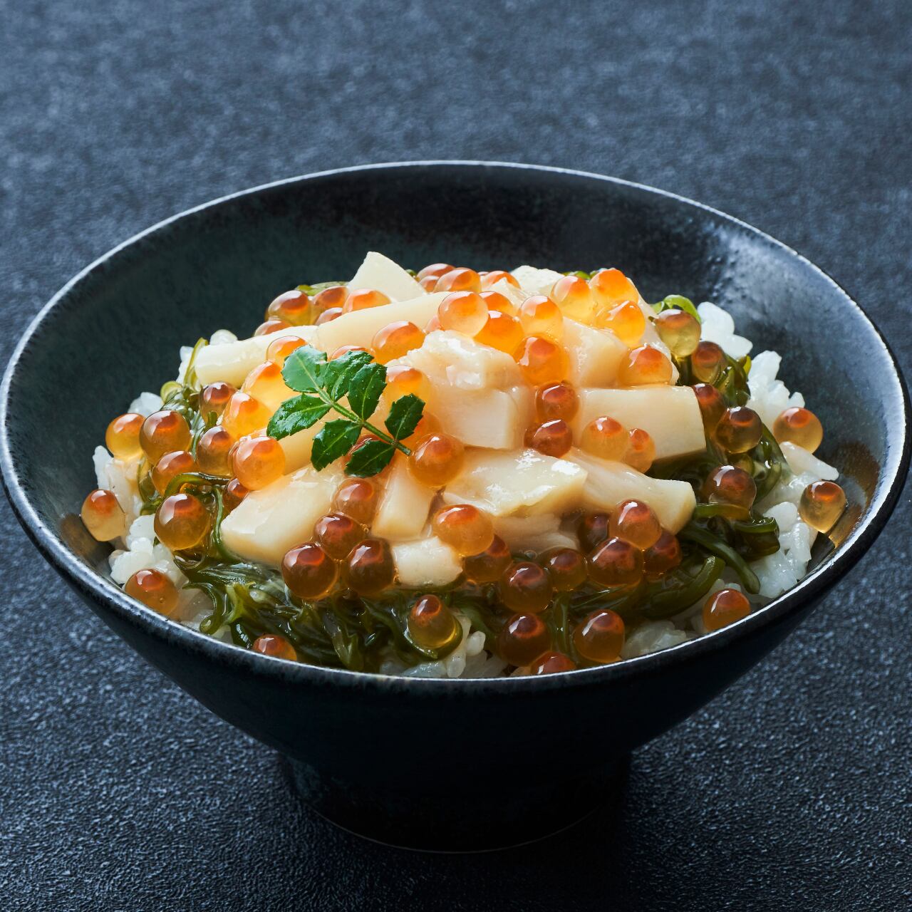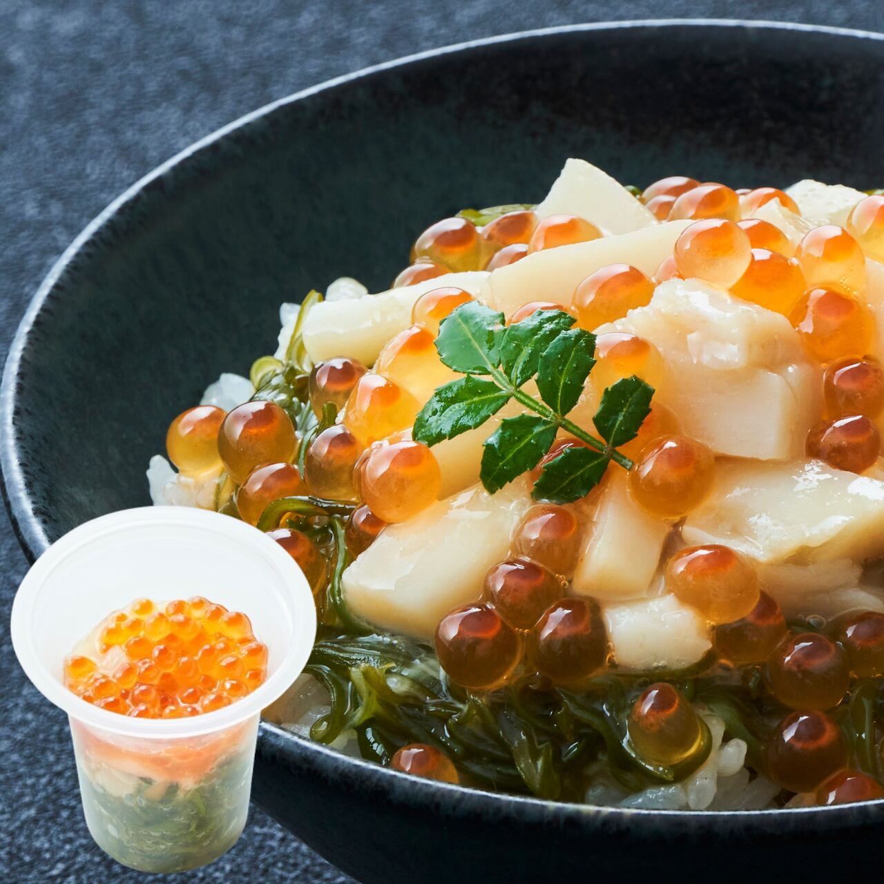 新鮮な国産ほたて、三陸産の肉厚めかぶ、美味しいいくらをたっぷり使用した豪華な海鮮丼が簡単に味わえます!