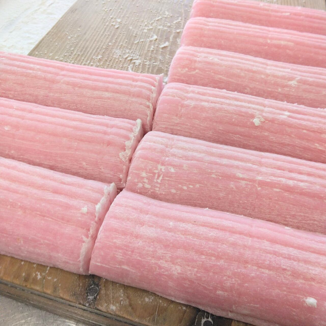全国にさまざまな種類がありますが、気仙地域のゆべしは、米粉・砂糖・水を練り、蒸して棒状に仕上げる独特のスタイルです。
