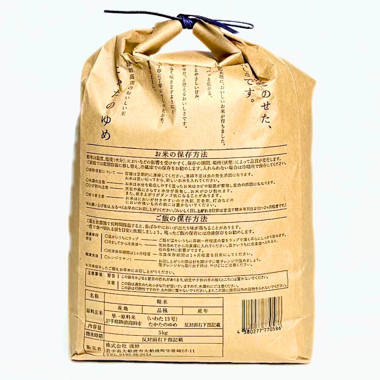 原料玄米:単一原料米 (いわた13号) 岩手県陸前高田市 たかたのゆめ 2024年度産