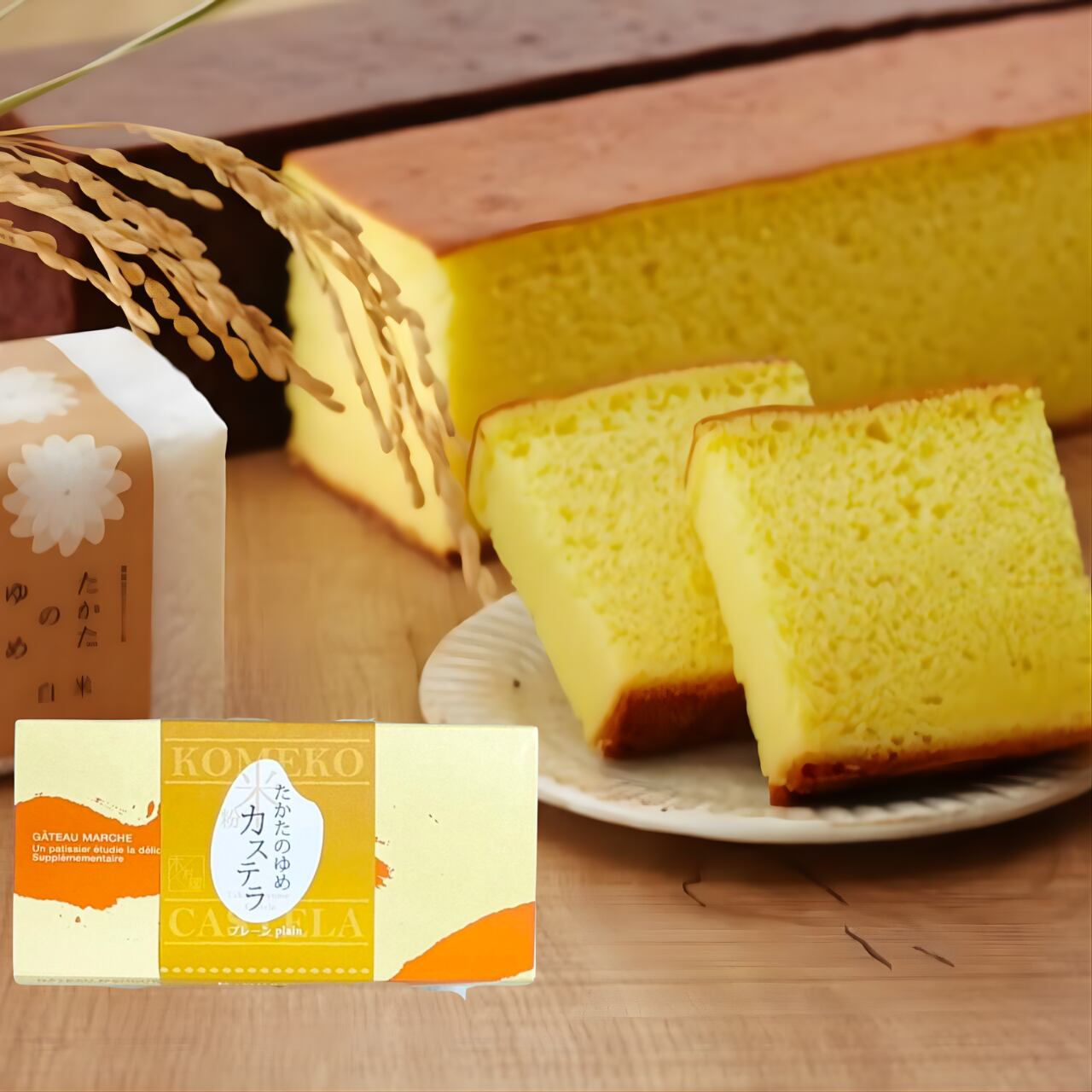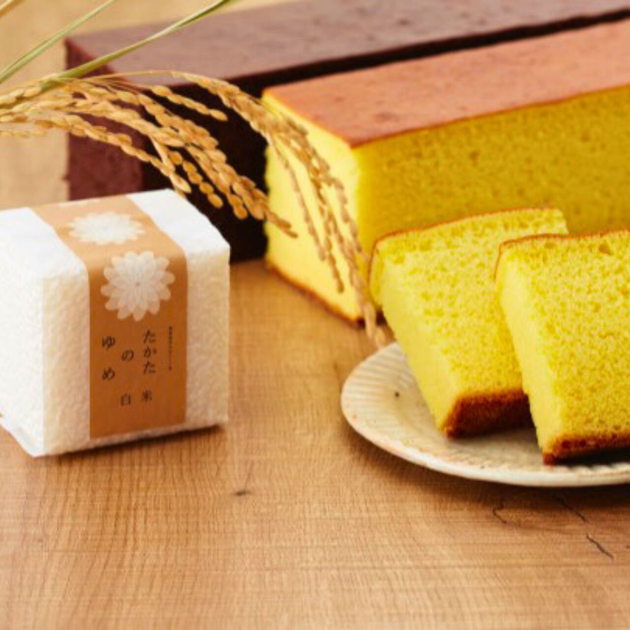 岩手県陸前高田市のブランド米「たかたのゆめ」を100%使用した、やさしい甘さの米粉カステラ。