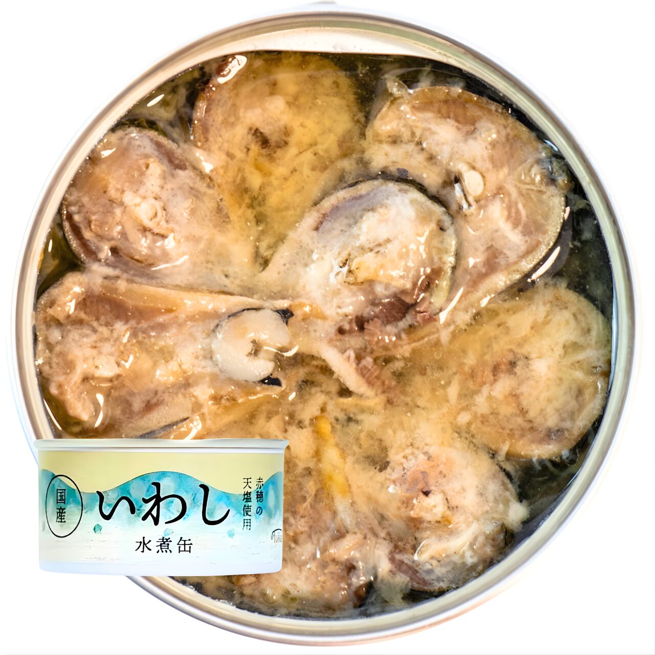 三陸沖で水揚げされた新鮮ないわしを、塩だけで仕上げた水煮缶です。