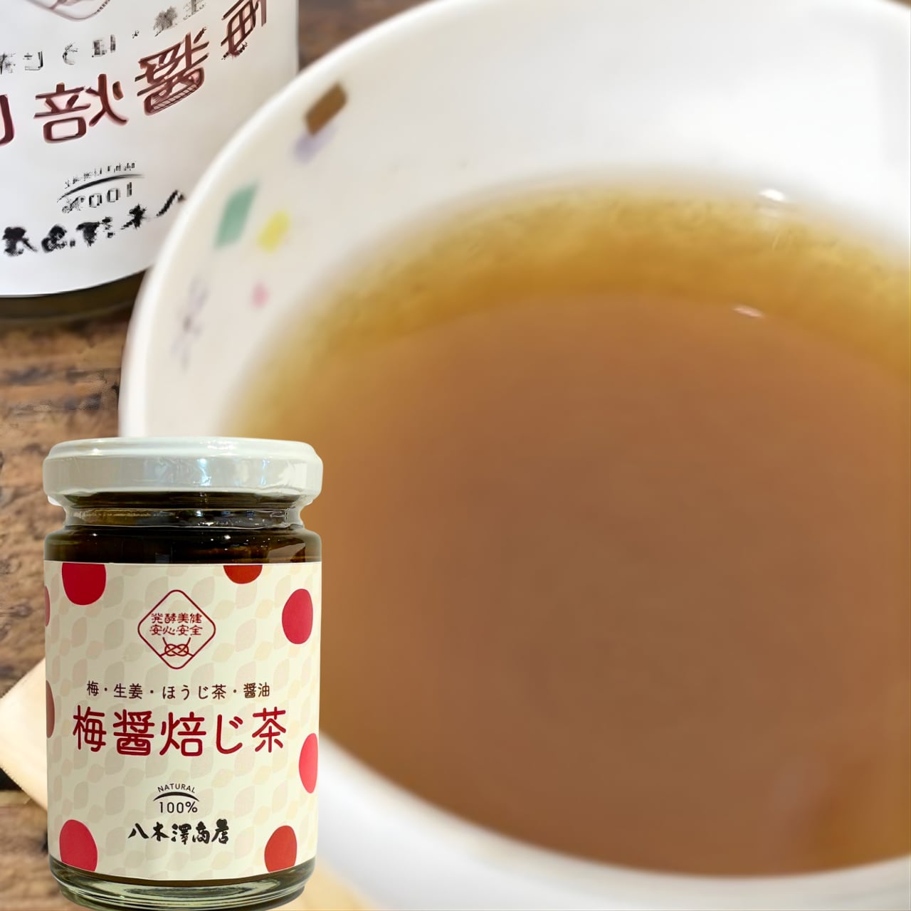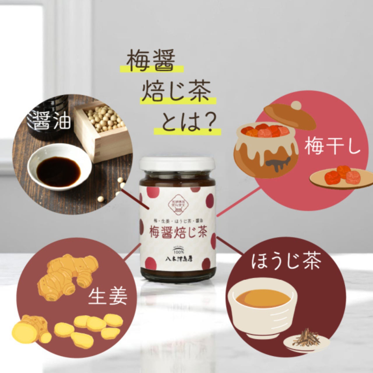 「梅醤(うめしょう)」とは、梅干しと醤油を合わせて熟成させた伝統的な調味料。疲労回復や冷え対策、風邪予防として古くから親しまれてきました。そこにほうじ茶と生姜を加えることで、毎日の暮らしに取り入れやすく、より香り高くやさしい味わいにアレンジしています。