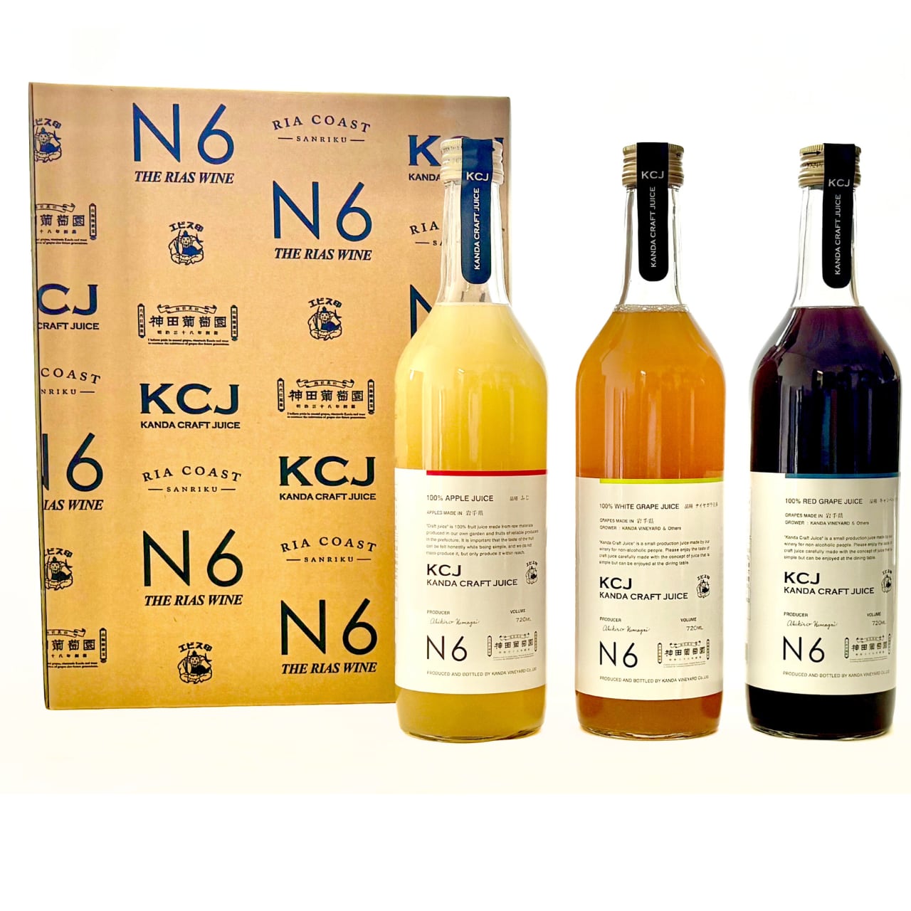 明治38年創業の老舗ワイナリー「神田葡萄園」から、人気のクラフトジュース3種(赤・白・アップル)を詰め合わせた贈答用セットです。