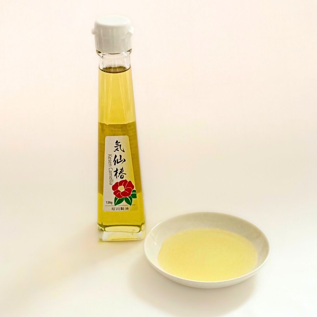 気仙地方で育つツバキの実から搾った純度100%の椿油。料理に使えば照りやコクが増し、ワンランク上の風味に仕上がります。