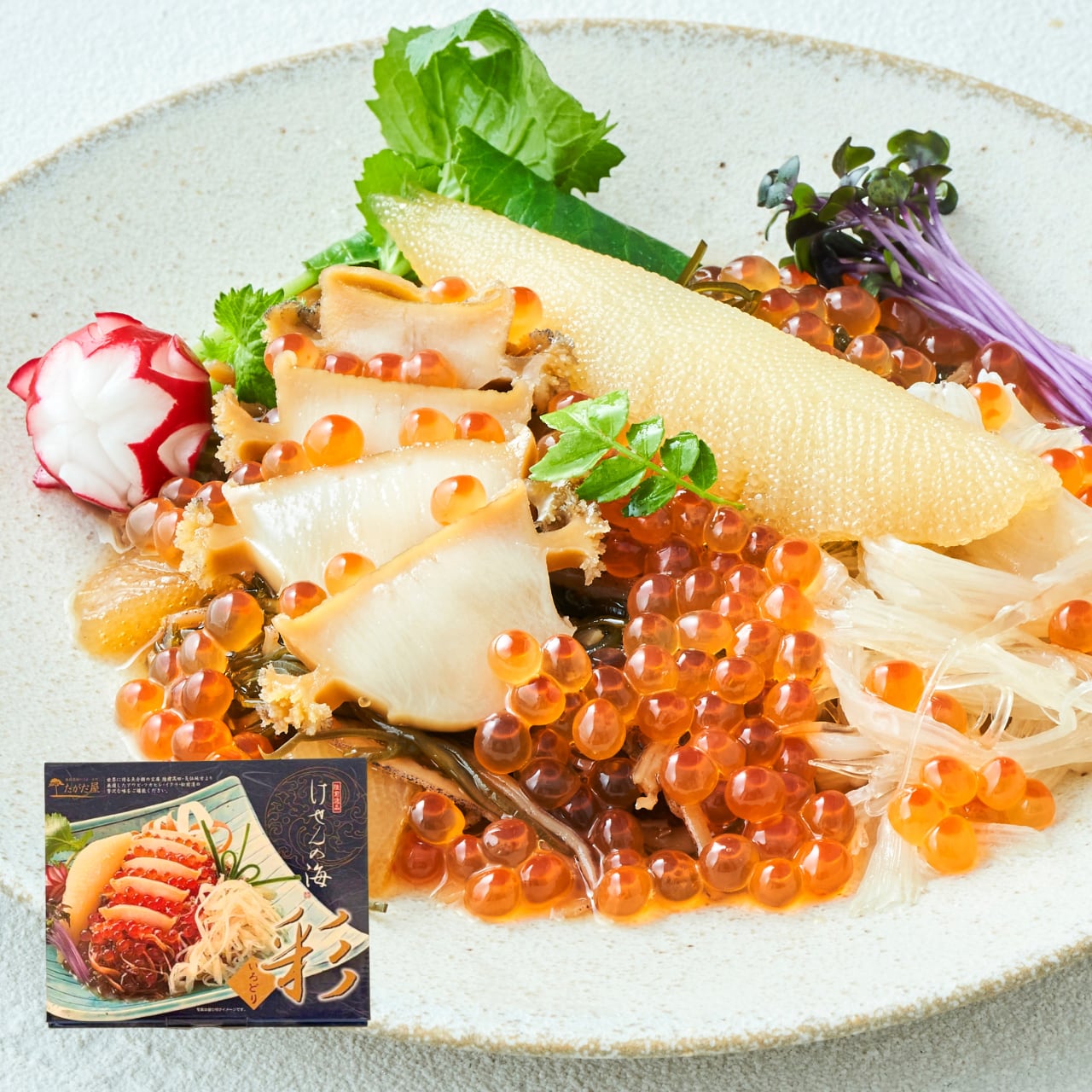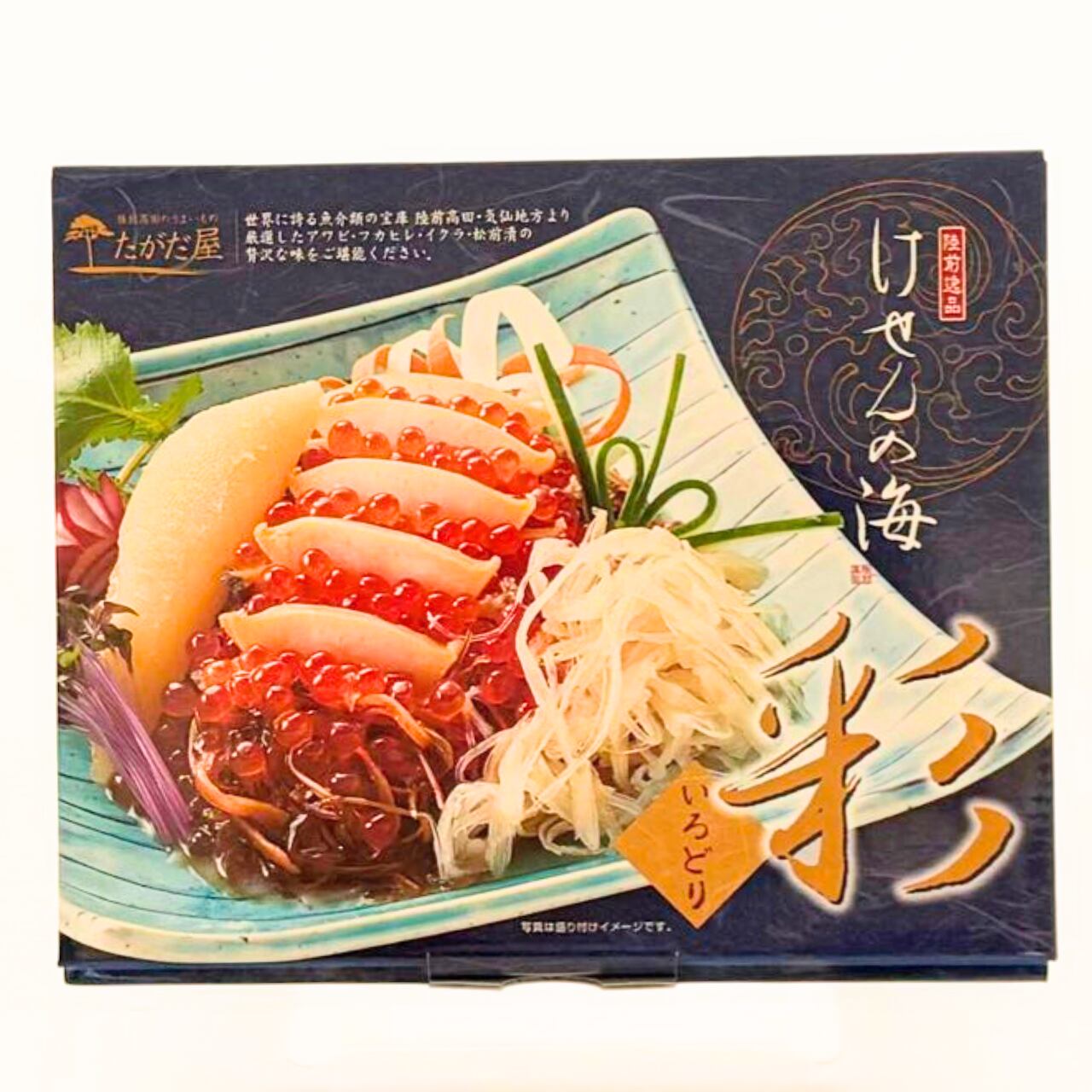 「けせんの海 彩」は、陸前高田の海の恵みを贅沢に盛り込んだ、ボリュームたっぷりの海鮮松前漬けです。