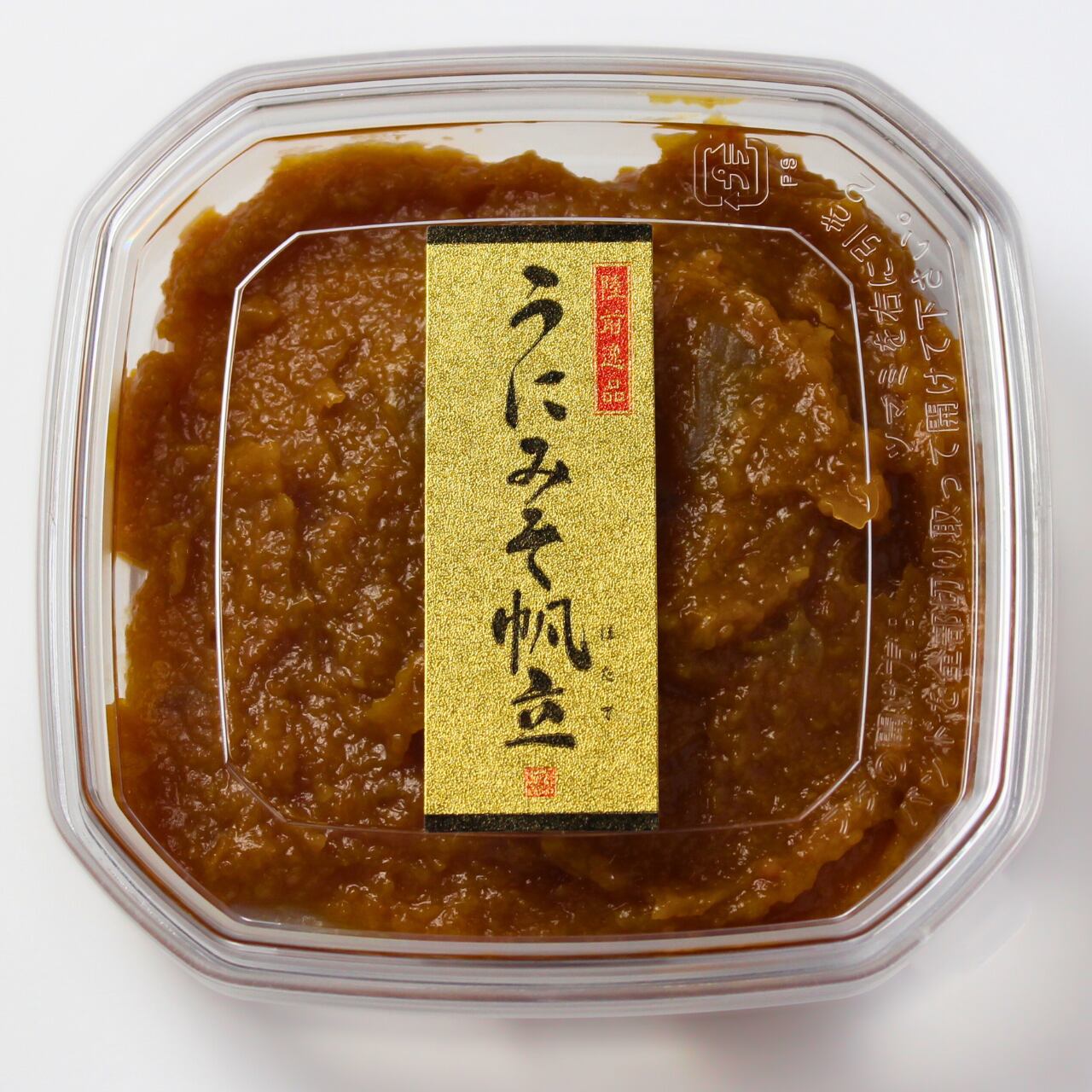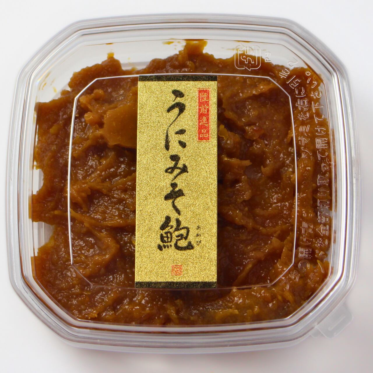 原材料名:米みそ(大豆、米、食塩)、うに、鮑、砂糖、発酵調味料、清酒、醤油、卵黄、かつお節エキス/調味料(アミノ酸等)、酒精、(一部に大豆・小麦・あわび・卵を含む)